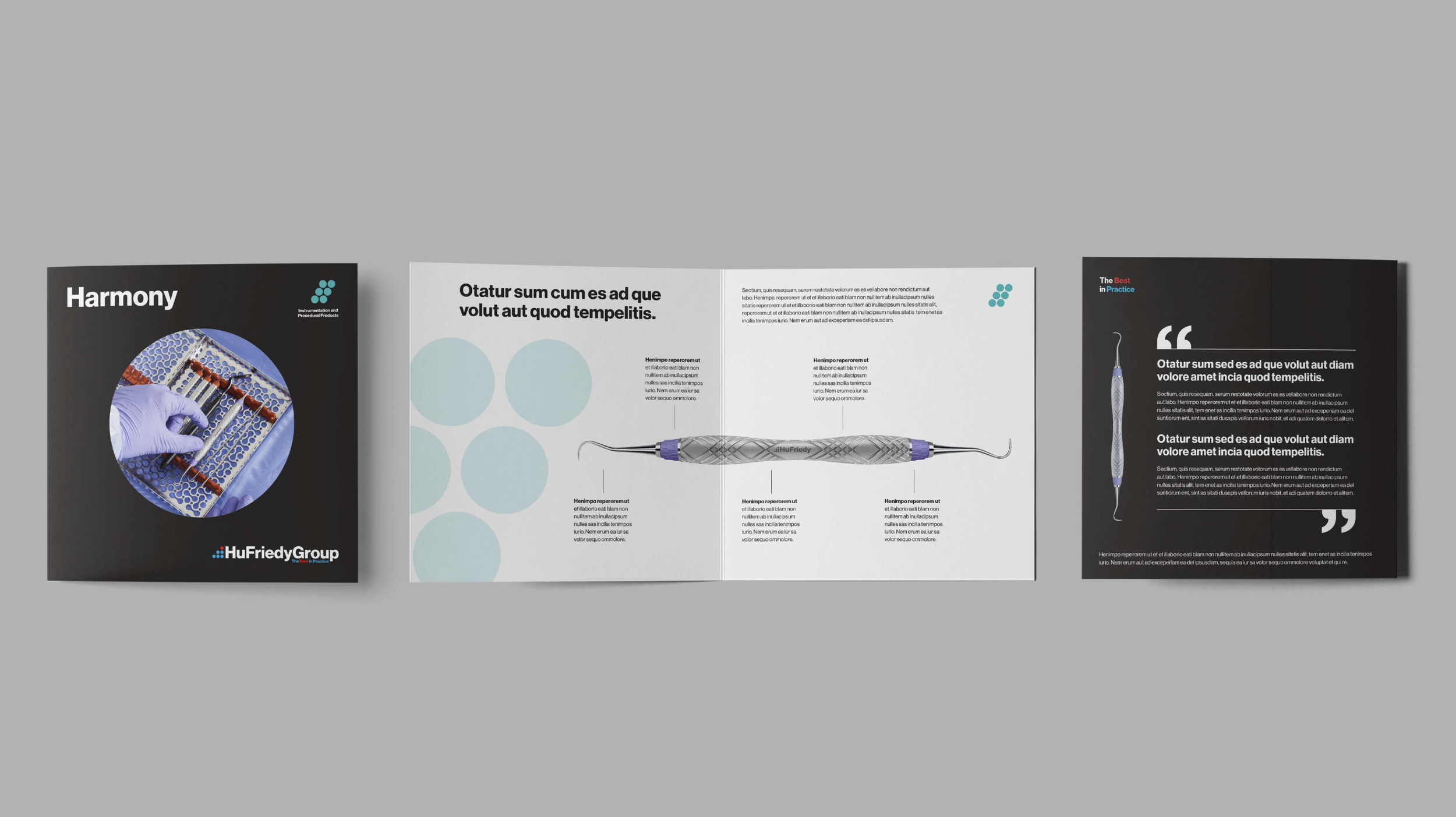 With the merger of Hu-Friedy and Crosstex, an evolved logo was designed to represent their leading performance as the best in practice within the dental industry. Along with the logo a brand language needed to evolve as well, and so an evolution of the guidelines and collaterals were created to unify the entire visual identity.