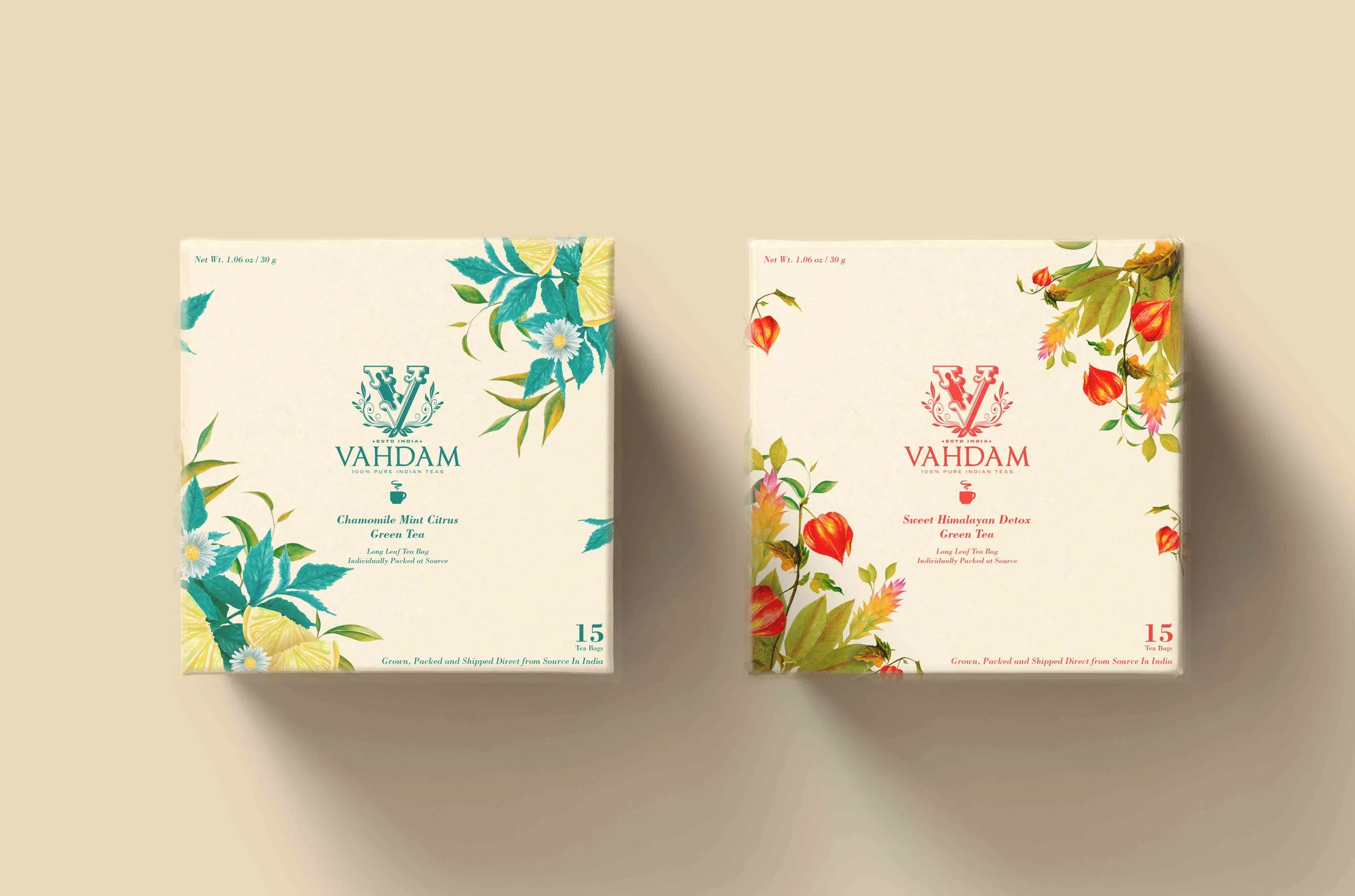 Provided with a brief by the client, to create a mass, ingredient oriented packaging, the illustrations in this packaging direction are completely organic, handpainted using inks and watercolors and then scanned to create a botanical illusion, where the plants are growing in towards the logo. I chose to hand paint the illustrations to bring to the attention the delicacy and finesse with which the tea leaves are picked and blended.